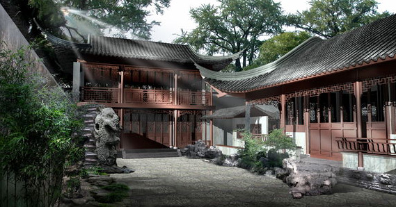 少顷,只见院中景物都渐渐隐去,整个院落的基底框架清晰可见。